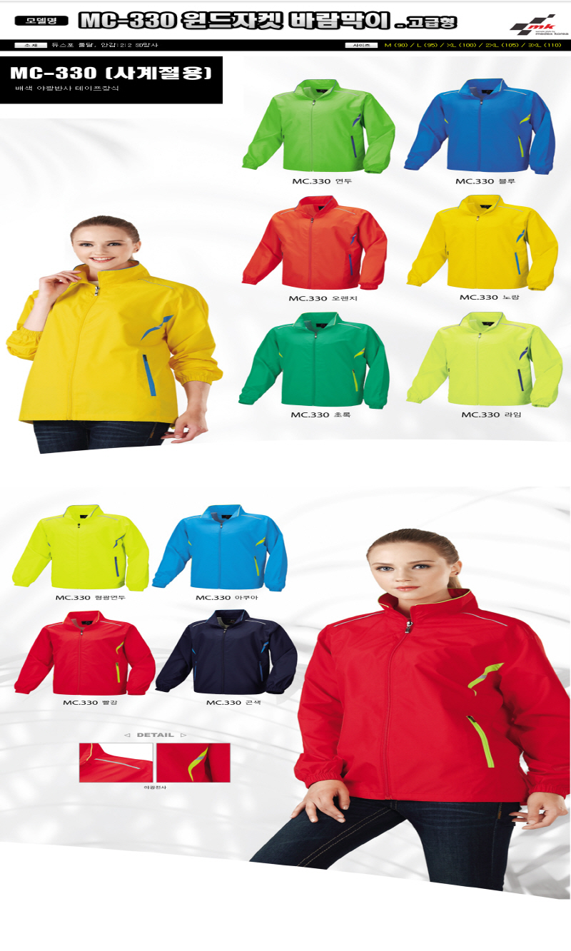 • •Size : M, L, XL, 2XL, 3XL •소재 : 듀스포 풀달, 안감:2:2 SD망사 ※단가변동 있을 수 있습니다. 제품 색상은 인쇄된 것이므로 실제 제품과 다소 차이가 있을 수 있습니다. MC-330