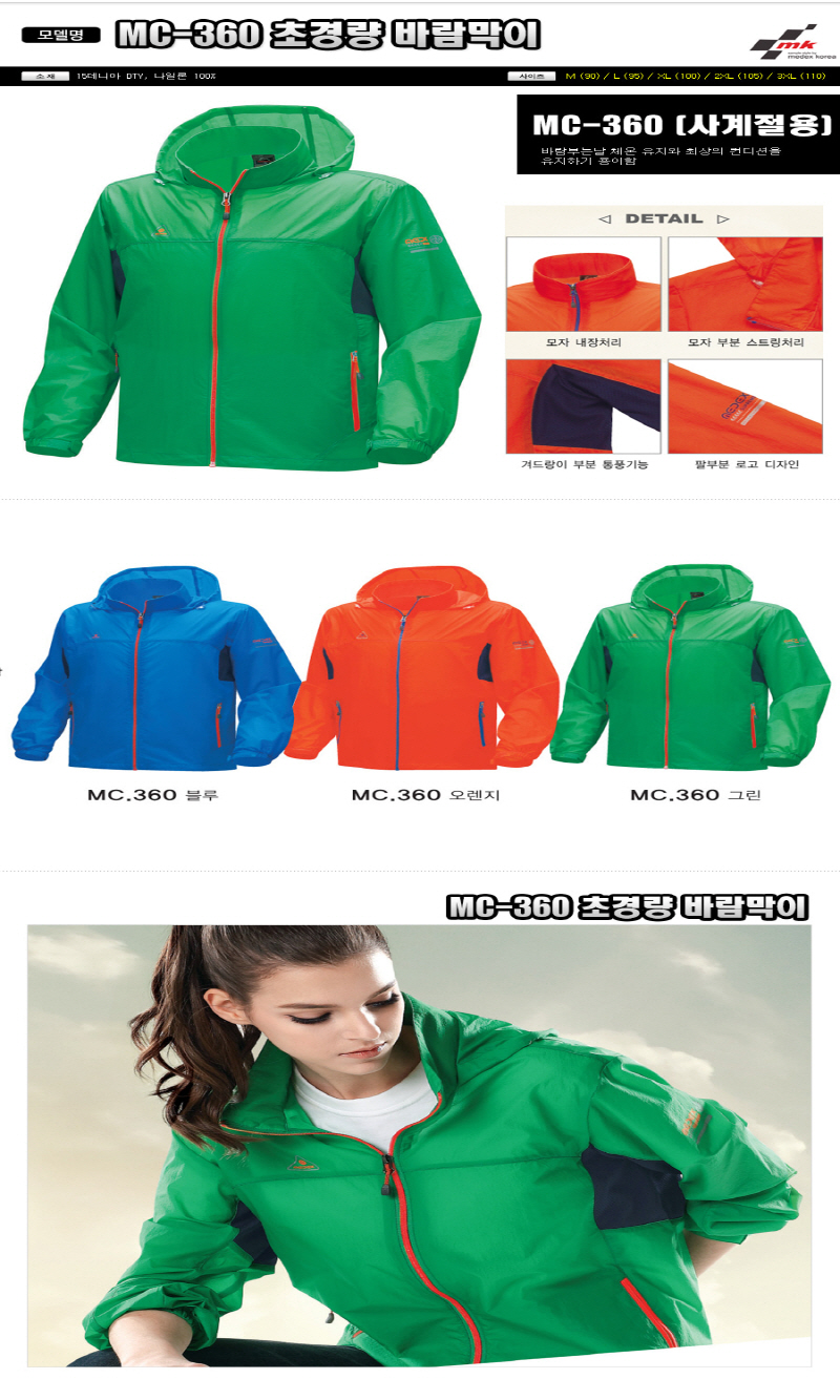 • •Size : M, L, XL, 2XL, 3XL •소재 : 15데니아 DTY, 나일론 100% ※단가변동 있을 수 있습니다. 제품 색상은 인쇄된 것이므로 실제 제품과 다소 차이가 있을 수 있습니다. * MC-360