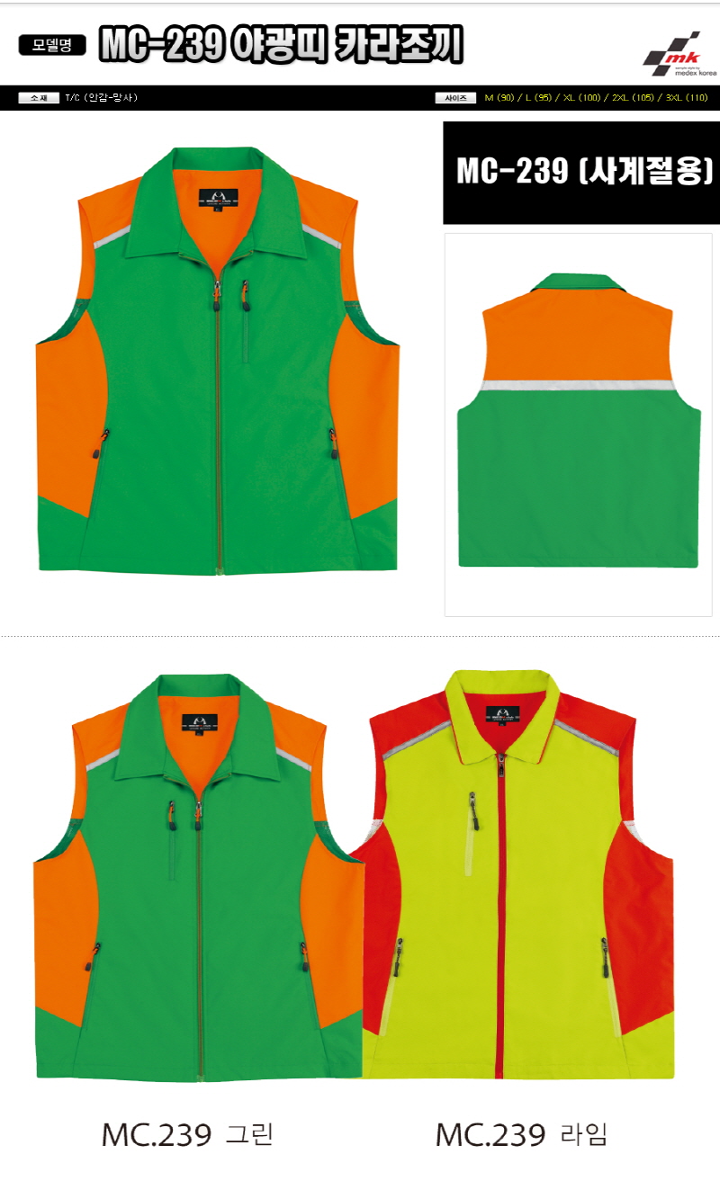 • •Size : M, L, XL, 2XL, 3XL •소재 : T/C (안감-망사) ※단가변동 있을 수 있습니다. 제품 색상은 인쇄된 것이므로 실제 제품과 다소 차이가 있을 수 있습니다. MC-239