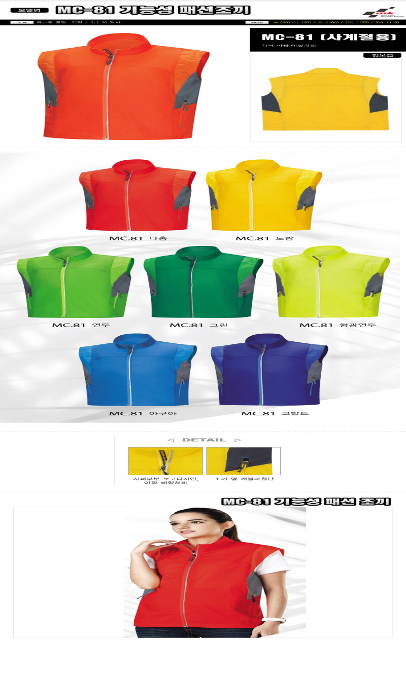 MC-81 •Size : M, L, XL, 2XL, 3XL •소재 : 듀스포 풀달, 안감:2:2 SD망사 ※단가변동 있을 수 있습니다. 제품 색상은 인쇄된 것이므로 실제 제품과 다소 차이가 있을 수 있습니다.