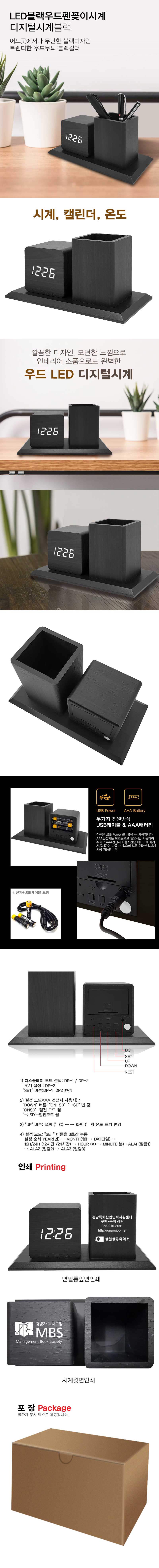 LED 블랙우드 펜꽂이시계