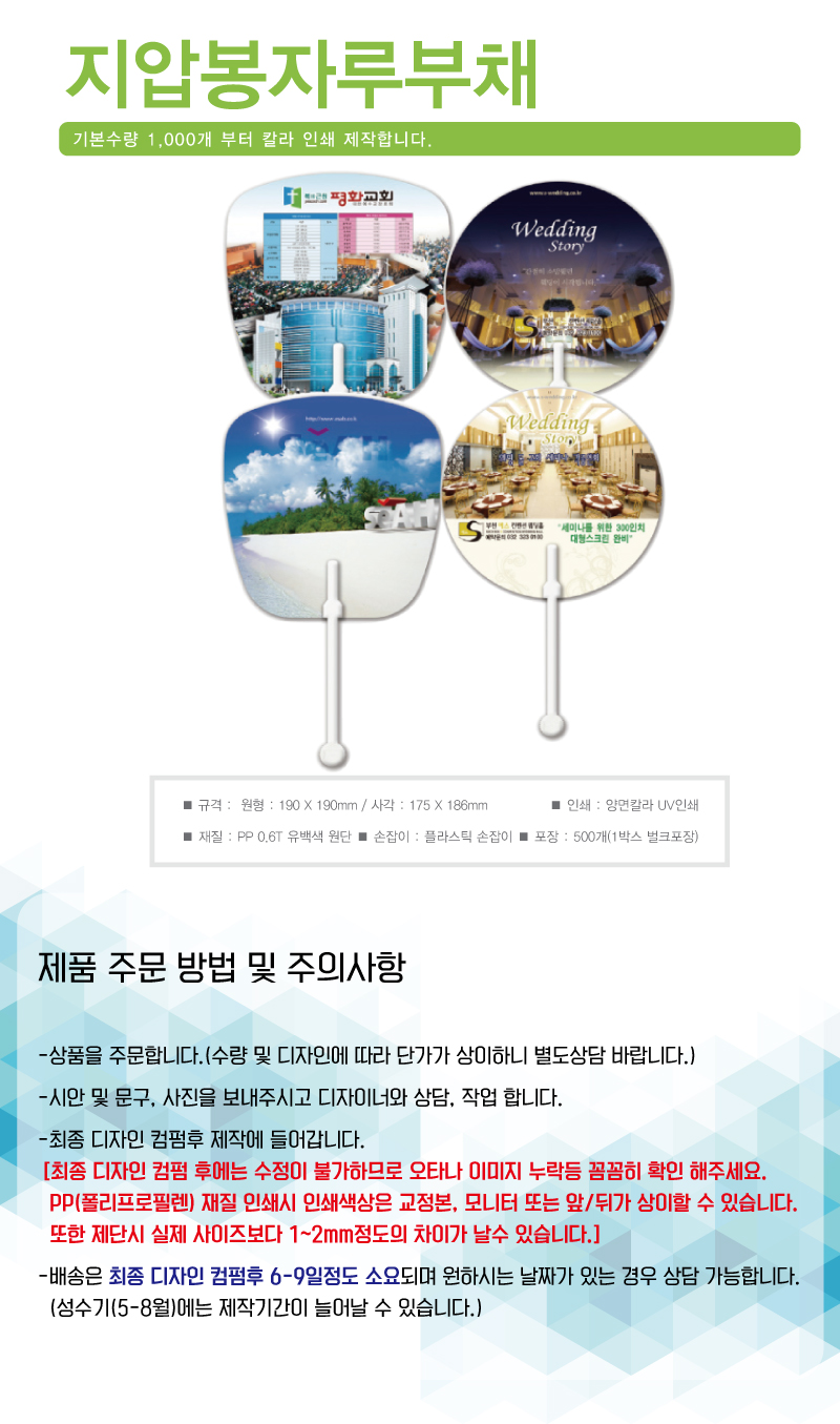 지압봉자루 부채 / 수량별 단가 문의 요망