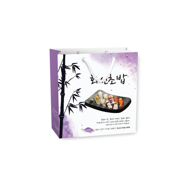• •Size : 250x170 X 260mm •기본수량 : 1,000부이상 •180g스노우지, 단면유광코팅, 브레이드끈 ※아래 모든 이미지는 샘플 이미지이며 인쇄 시안은 직접 작업 하신후 접수 또는 디자인 의뢰를 해 주셔야 합니다.