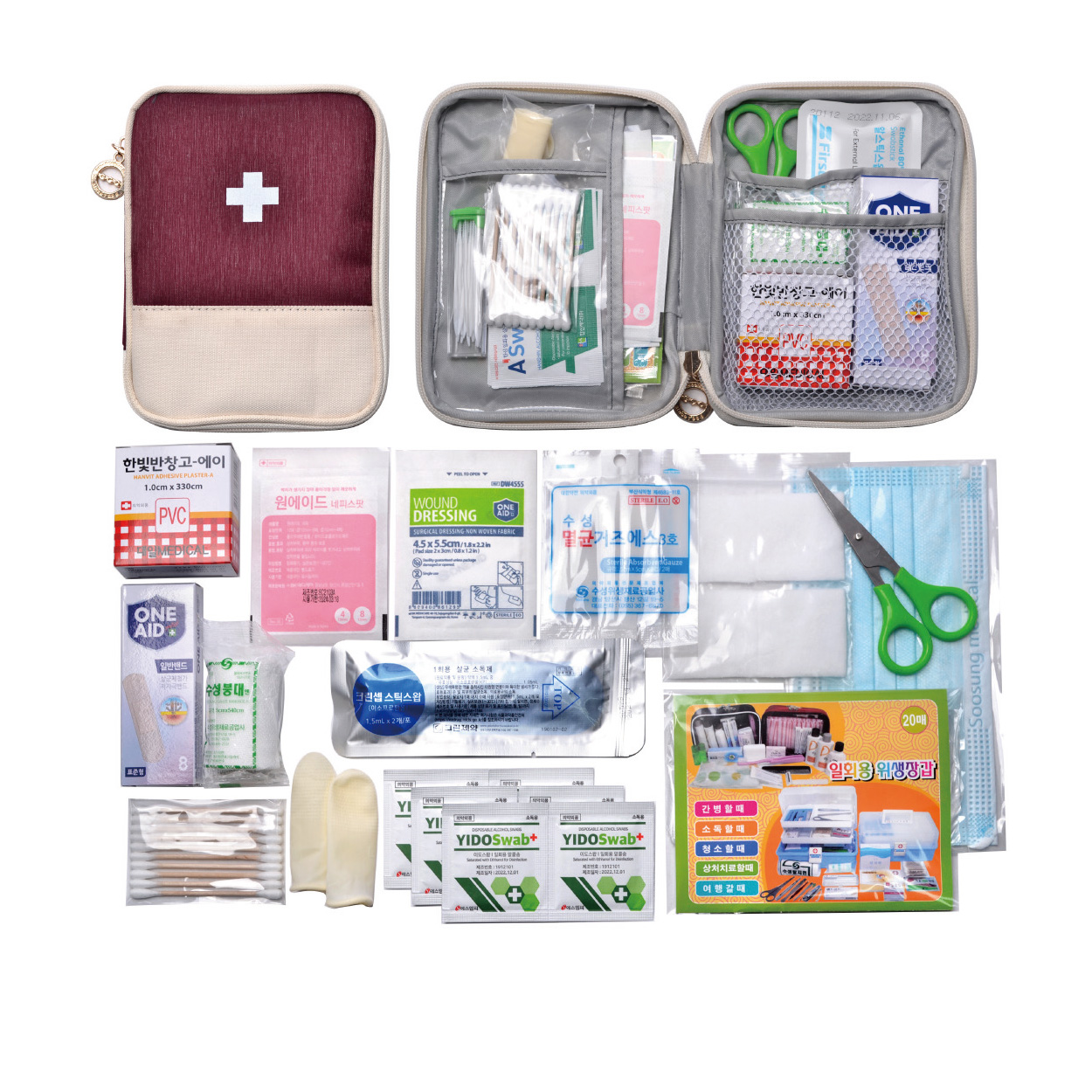 *알콜솜6p *드레싱밴드 *멸균거즈2p *10p면봉  *구급케이스​