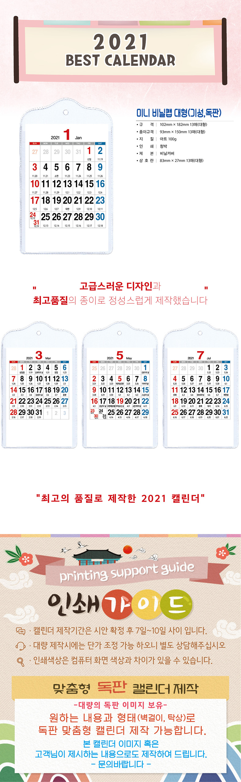 • •특대형·대형·일반형Size : 102×182/94×160/84×140mm •특대형·대형·일반형 인쇄면Size: 93×150/86×131/75×114mm •수량 : 1,000부이상