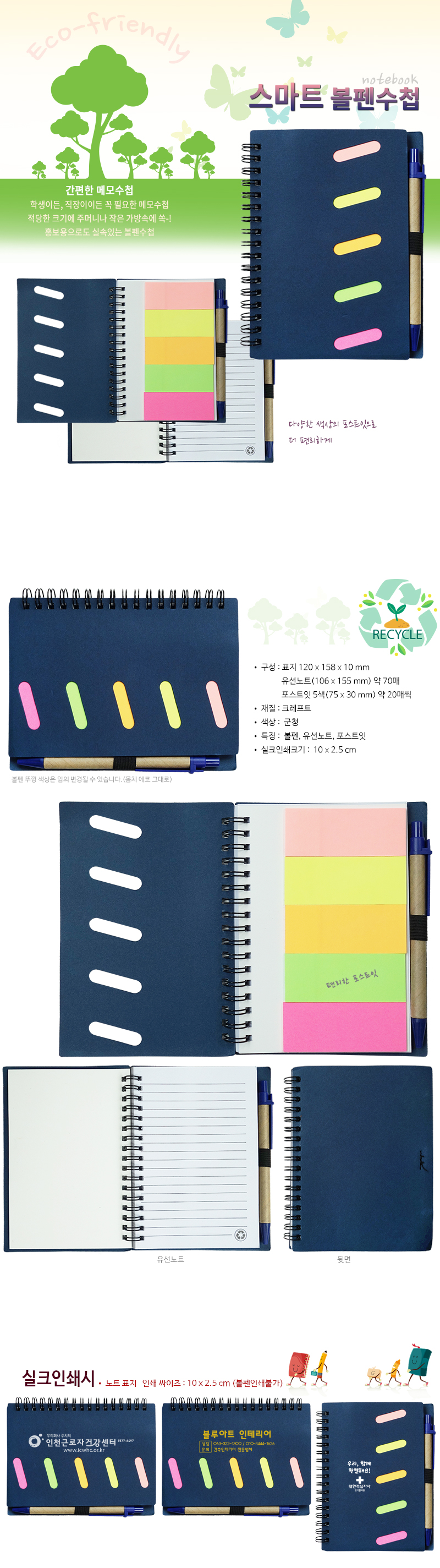 • •120x158x10mm/기본 300개 •20매/유선노트 약70매/OPP ※ 기본수량 미만시 인쇄비 추가