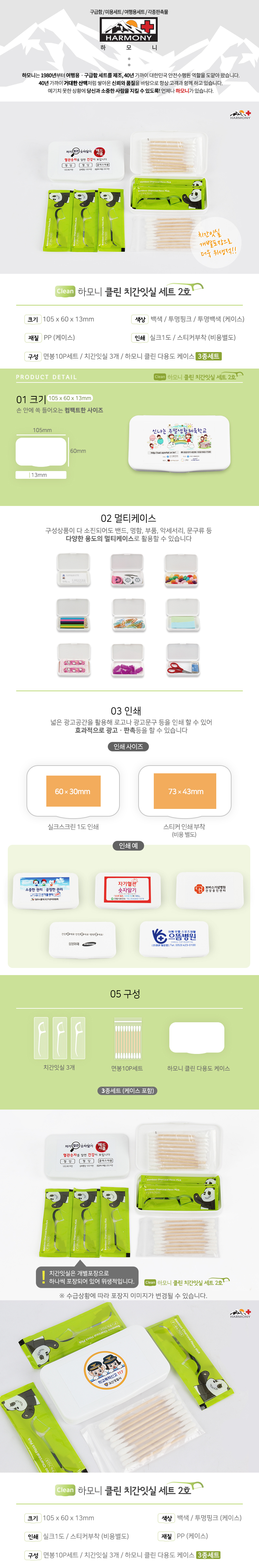•치간잇실 3개, 10p면봉 •수량:1000EA •SIZE : 105×60×13 (mm) •1BOX:500EA •스티커비 별도 ※상품 내 모든 구성상품들은 수급상황에 따라 예고없이 변동 될 수 있습니다.