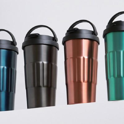 메탈 칼라 핸들 이중 스텐 텀블러 450ml